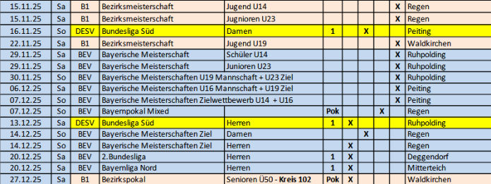 aktuelle Ausschreibung/Startliste zur Bezirksliga Süd