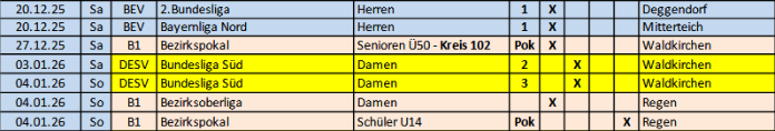 Änderung an der Startliste zur Bezirksoberliga Damen